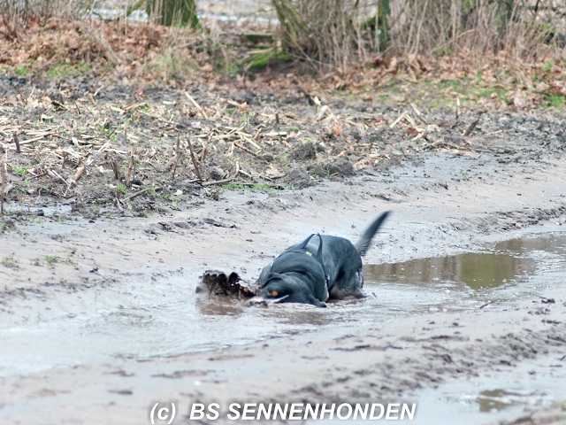 “Dat epilepsie binnen het ras voor aanzienlijke problemen zorgt, was ons uiteraard bekend. Mijn vorige Grote Zwitser Floris heeft bij zijn eerste eigenaren ook drie maal een epileptische aanval gehad, maar in de tijd dat hij bij mij was, is hij gelukkig aanvalsvrij gebleven. Hoewel ik dus nog nooit een epileptische aanval had meegemaakt, herken je zoiets meteen. Dat het geen prettige ervaring is, zal ik niemand hoeven uitleggen. De aanval duurde gelukkig maar kort, maar het was wel een 'complete' aanval (grand mal). Bob stond al snel weer op z'n poten, aanvankelijk heel instabiel, maar hij herstelde snel. Wel was hij zichtbaar erg vermoeid.